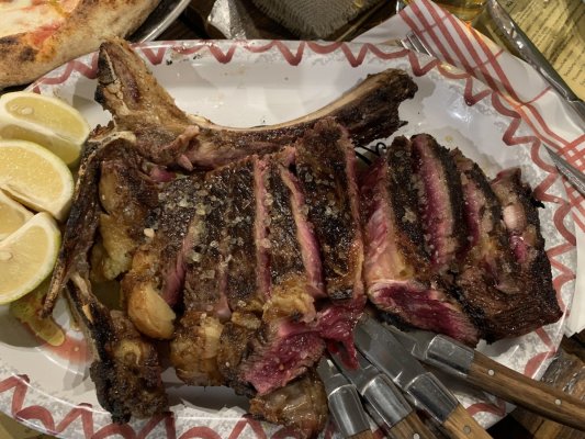In Pescara, we were passing through, walking along the deserted central streets, we noticed a restaurant in which there was a full boarding. Curiosity got ... More In Pescara, we were passing through, walking along the deserted central streets, we noticed a restaurant in which there was a full boarding. Curiosity got the better of us and we decided to visit it. We managed to book a table for 9 o'clock. Ordered pizza, arrosticini and steak. Everything was incredibly delicious. Pizza and meat were cooked on coals. A very worthy restaurant, unfortunately, there are few of them in Italy.