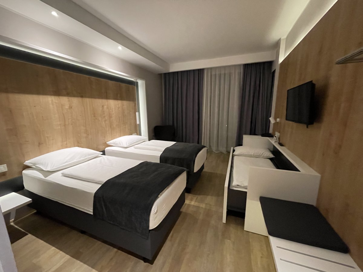 Бронювали номер на трьох. Extra bed шукали довго, бо в них мобільні меблі, стіл трансформується в ліжко, але жодних пояснень або інструкцій. Але це пів ... More Бронювали номер на трьох. Extra bed шукали довго, бо в них мобільні меблі, стіл трансформується в ліжко, але жодних пояснень або інструкцій. Але це пів біди. Постільної білизни не було також. Приїхали пізно, с дороги дуже втомлені, тому не дуже хотілося всім цим займатися протягом години.