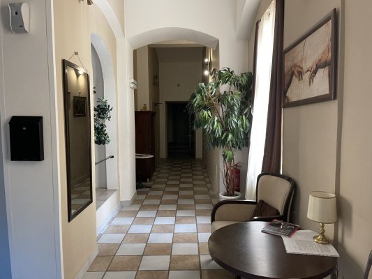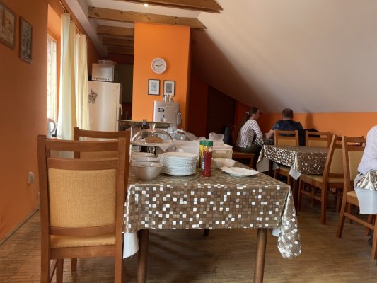 The hotel was chosen only for an overnight stay, because it was suitable for the price. Check-in until 11 pm, but we were late and ... More The hotel was chosen only for an overnight stay, because it was suitable for the price. Check-in until 11 pm, but we were late and the administrator called us to inform us that he was waiting for us. We were put in a room on the 3rd floor, but we saw that it was not cleaned there and returned to the administrator. Then we were offered another room which was bigger and clean. It was a two-room suite with a refrigerator and a large TV. The bed is quite comfortable, soundproofing is excellent.
