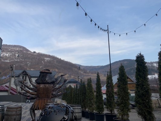 В загалі заклад дуже цікавий, з панорамних вікон відкривається величний краєвид Карпат. За будівлею є місце для прогулянки, прилегла територія санаторію