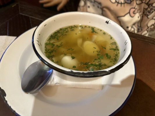 Мені дуже сподобалися перші страви. Велика порція, смачно і дуже цікава подача. Єдине чого мені ... More Мені дуже сподобалися перші страви. Велика порція, смачно і дуже цікава подача. Єдине чого мені не вистачає в цьому закладі, це гостинності. По-перше нас не провели, хоча ми були самі в ресторані, по-друге офіціанти виглядають дуже не задоволеними. Ну то ладно, мабуть ми хочемо забагато уваги для себе ) Загалом досить непогано