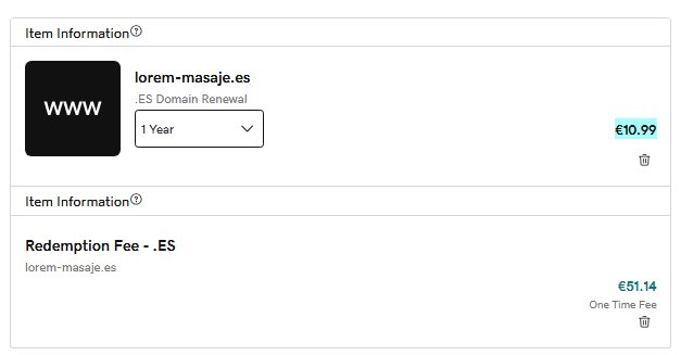 GoDaddy demuestra una vez más ser la PEOR empresa de registros de dominios. No pagué ... More GoDaddy demuestra una vez más ser la PEOR empresa de registros de dominios. No pagué a tiempo por mi dominio y ahora me exigen 50€ solo para restaurarlo, cuando TODOS los demás registradores dan al menos un mes de gracia GRATIS. ¿Por qué esta avaricia desmedida? ¡Es simplemente una estrategia para exprimir a los clientes!